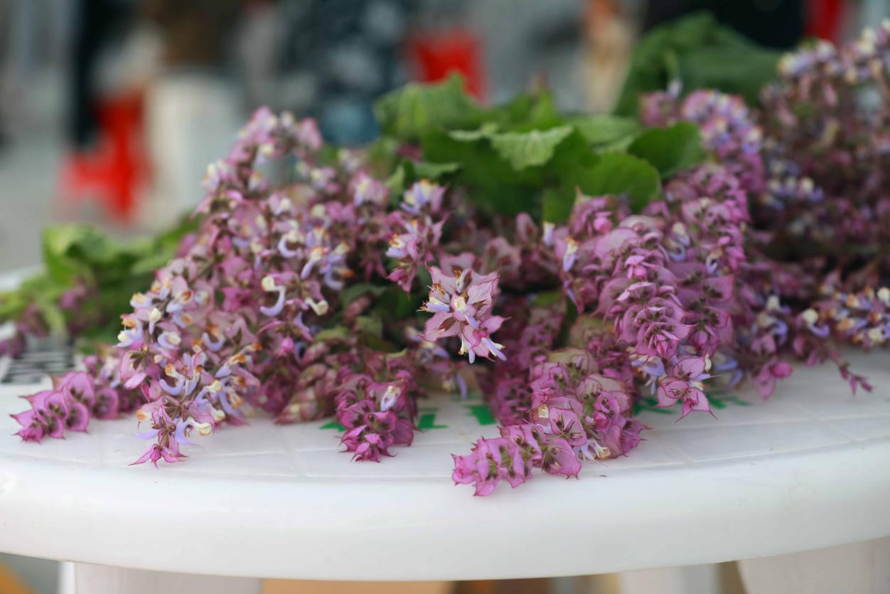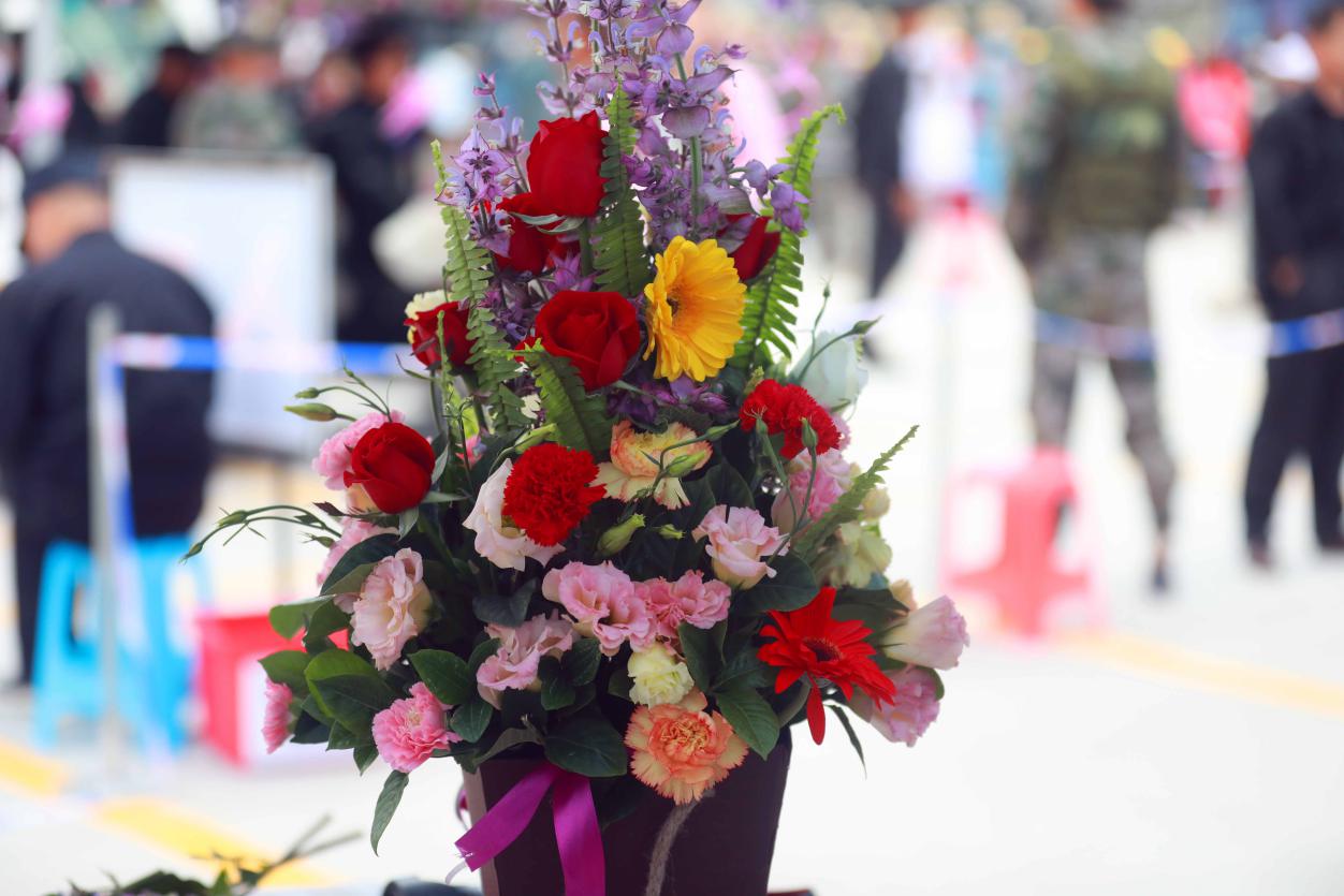 “插花比赛第一名在接受主持人的采访”