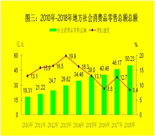 全年地方社会消费品零售总额50.23亿元,增长8.4%。按规模划分,限额以上单位消费品零售额12.2亿元,增长4.4%;限额以下单位消费品零售额38.03亿元,增长9.7%。按行政区域分,博乐市社会消费品零售总额37.74亿元,增长8%;精河县8.91亿元,增长10.1%;温泉县3.58亿元,增长8%。按消费形态分,餐饮收入7.21亿元,增长10.1%;商品零售43.02亿元,增长8.1%。